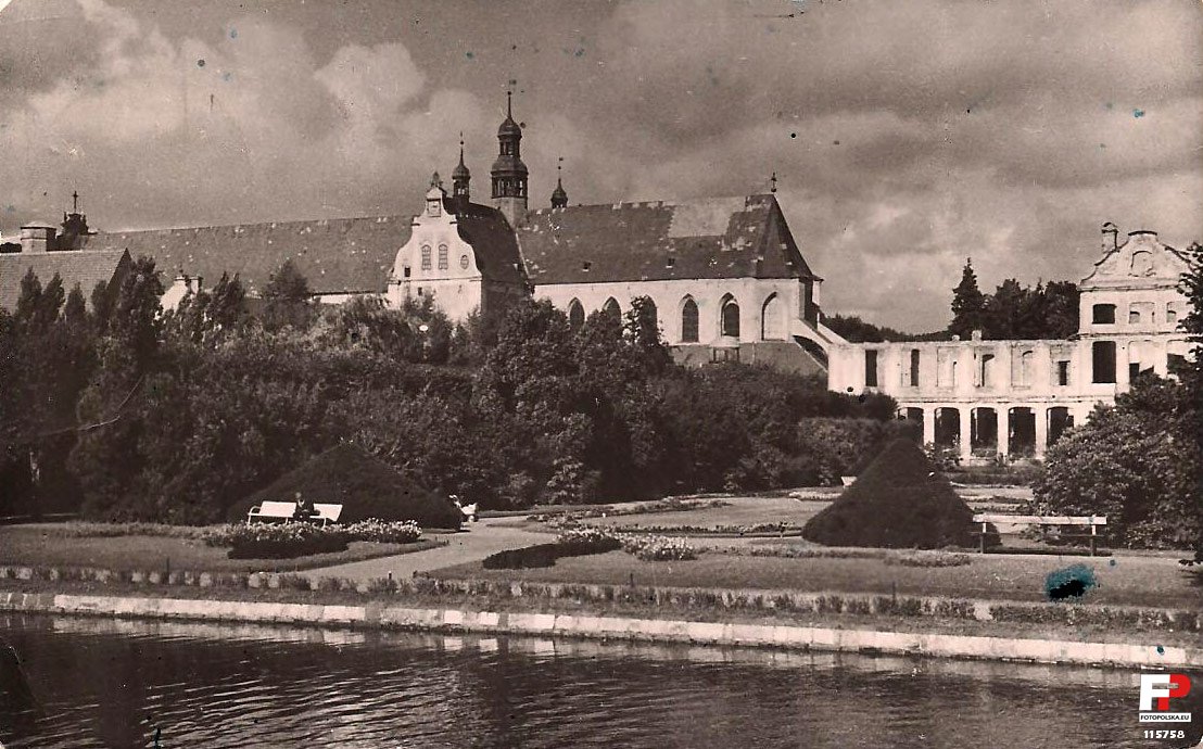 Zmieniłem datowanie na sporo wcześniejsze. Nie mogły to być lata '60-'70, bo remont pałacu rozpoczęto w roku '58 a już w '65 otwarto tam muzeum. Przeniosłem tez poniżej roku 1953, bowiem przy tym cisie z prawej, znajduje się ławka taka stała, natomiast na fotce z moją "musią" jest już taka zwykła, tak więc sądzę że to powyższe jest wcześniejsze.