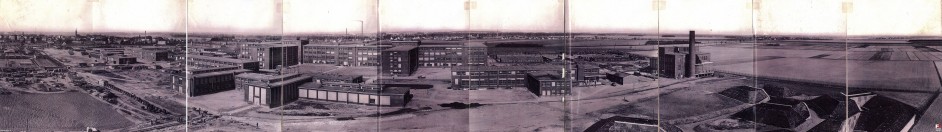 Pięknie widać baraki obozowe z lewej i z prawej strony. Baraki przymusowych robotników budujących obiekty dzisiejszego PZL Hydral...