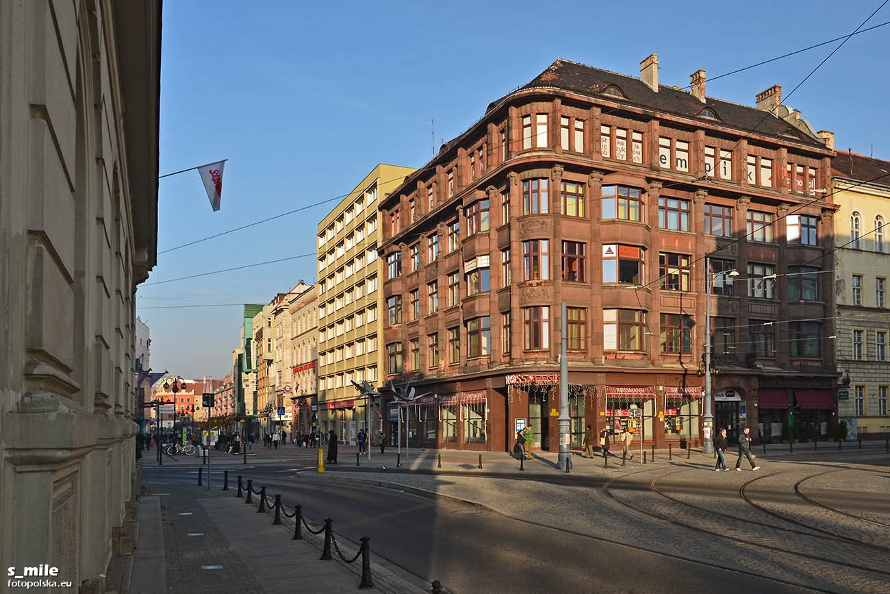 2 pobrania 1341 odsłon 5.49 średnia ocen Poprzednie i następne zdjęcia s_mile Obiekty widoczne na zdjęciu Dom "Pod św. Hieronimem" więcej zdjęć (59) Zbudowano: 1911 Dawniej: Dom handlowy Juliusa Schottländera (St. Hieronymus), akademik UW Szklany Dom Rzeźba "Ptaki" więcej zdjęć (16) Wykonawca: Magdalena Abakanowicz Zbudowano: 2009 ul. Świdnicka więcej zdjęć (4176) Dawniej: Schweidnitzer Strasse, Neue Schweidnitzer Strasse, Aleksandra Fredry, Stalingradzka Ulica prowadząca od południowo-wschodniego narożnika Rynku na południe należy do najstarszych we Wrocławiu. Pierwszy odcinek od Rynku do wewnętrznej fosy wytyczono ok. 1240 r. ale już w początkach XIV w. przedłużono ją do fosy zewnętrznej. Pierwszy zapis pojawia się w 1345 r., gdzie występuje pod nazwą Schwiednitzerstr. (ul. Świdnicka). W XIV w. powstały także dwa zespoły klasztorno-szpitalne związane z zakonem Joannitów (kościół Bożego Ciała) i zakonem Augustianów (kościół św. Doroty). Od początku wznoszono przy ulicy wiele karczm i zajazdów, a także pełniła ona funkcje handlowe. Dalszy rozwój ulicy nastąpił po wyburzeniu fortyfikacji miejskich w 1807 r. Oficjalnie przedłużono ją do obecnej ul. Powstańców Śląskich w 1823 r., nadając nowemu odcinkowi nazwę Neue Schweidnitzerstr. W pierwszej połowie lat 40. XIX w. wzniesiono z inicjatywy Eugena von Vaersta gmach Teatru Miejskiego, który zaprojektował Carl Ferdinand Langhans. Tuż obok powstał w 1846 r. budynek Generalnej Komendantury wg proj. F.A. Stüllera, a w latach 1863-65 budynek hotelu Monopol wg proj. spółki Brost & Grosser, do którego dobudowano w 1892 r. dom towarowy o tej samej nazwie. W pierwszej połowie XX w. najważniejszą budowlą wzniesioną przy ulicy był niewątpliwie olbrzymi dom handlowy firmy Wertheim (1928 r.). Niestety zniszczenia wojenne nie ominęły tej ulicy. Najbardziej ucierpiały odcinki północny przy Rynku i południowy od pl. Kościuszki do nasypu kolejowego. Luki w zabudowie stopniowo zastąpiono nowymi budynkami nie zawsze godnymi stania przy jednej z bardziej reprezentacyjnych ulic Wrocławia. W latach 70. w trakcie budowy trasy WZ zburzono także wybudowany w latach 30. dom handlowy Bielschowsky proj. Hermana Wahlicha, w którym po wojnie mieściła się m.in. składnica harcerska. Po wybudowaniu trasy WZ zlikwidowano na odcinku od Rynku do pl. Teatralnego linię tramwajową, a także ograniczono ruch samochodowy. W ostatnich latach ulica przeszła generalny remont na wspomnianym wyżej odcinku, który zmieniono jednocześnie w deptak. Co do nazwy ulicy to przez kilka miesięcy 1945 roku na całej długości obowiązywała historyczna nazwa - ul. Świdnicka. W listopadzie 1945 r. patronem dawnej Neue Schweidnitzerstr. został komediopisarz i poeta Aleksander hr. Fredro. Lecz hrabia miał swą ulicę tylko kilka lat. Już w 1952 r. przyłączono ją do ulicy Świdnicką, którą jednocześnie przemianowano "na wieczne czasy" na ul. Stalingradzką. Na wieczne czasy, czyli na pięć lat, bo do 1957 r. Wtedy przywrócono historyczną nazwę - ul. Świdnicka. |
