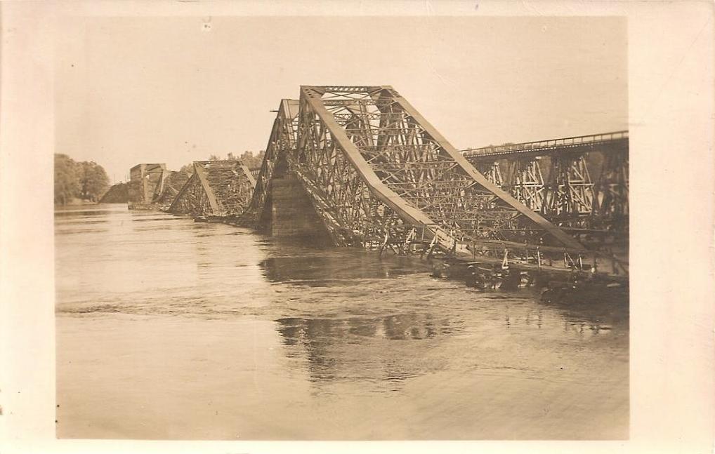 wrzesień 1915 , Most kolejowy na Wiśle, zniszczony podczas I wojny światowej - w tle most tymczasowySkomentuj zdjęcie |