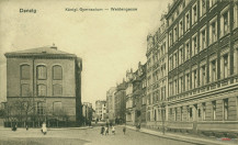 Lata 1900-1910 , Królewskie Gimnazjum (z lewej) i wschodnia pierzeja ul. Łąkowej. |