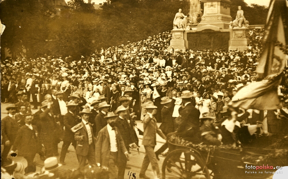 1907 , Pochód z okazji VII Zjazdu Śpiewaczego w 1907 r. na ul. Świdnickiej pod pomnikiem cesarza Wilhelma I.Skomentuj zdjęcie |