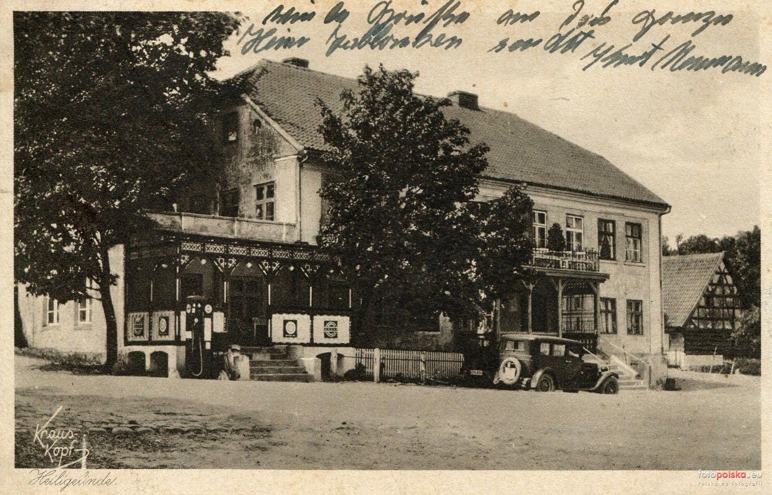 1934 , Święta Lipka - przed budynkiem widoczna pompa (stacja paliw).Skomentuj zdjęcie