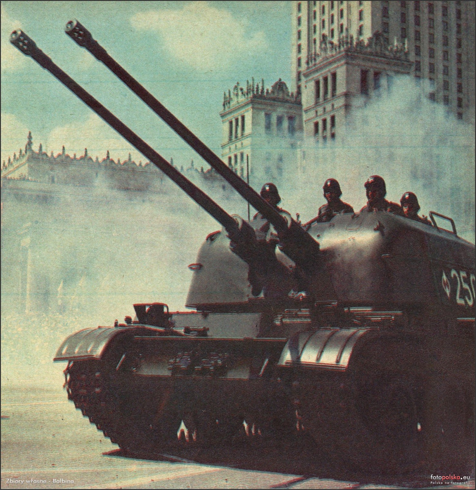 1966 , "Jeden z rodzajów nowoczesnego sprzętu: samobieżne podwójne sprzężone działo przeciwlotnicze ZSU-2-57 pokazane pamiętnej defilady Tysiąclecia." - zdjęcie pochodzi z tygodnika Stolica nr 41 (1088) 13.10.1968 fot. Zbyszko Siemaszko