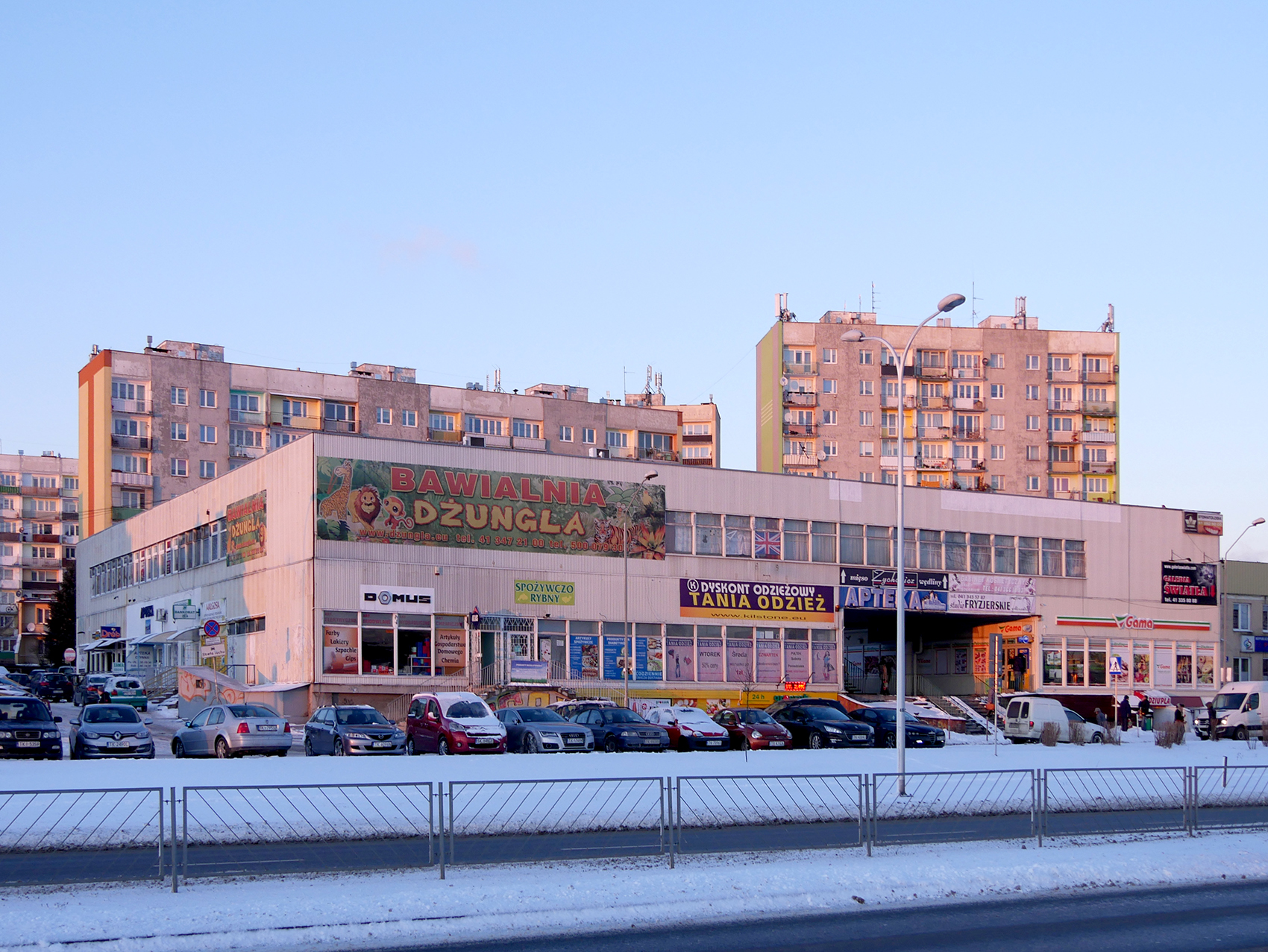 5 stycznia 2017 , Pawilony handlowe w osiedlu "Podkarczówka", widok od ul. Krakowskiej.Skomentuj zdjęcie