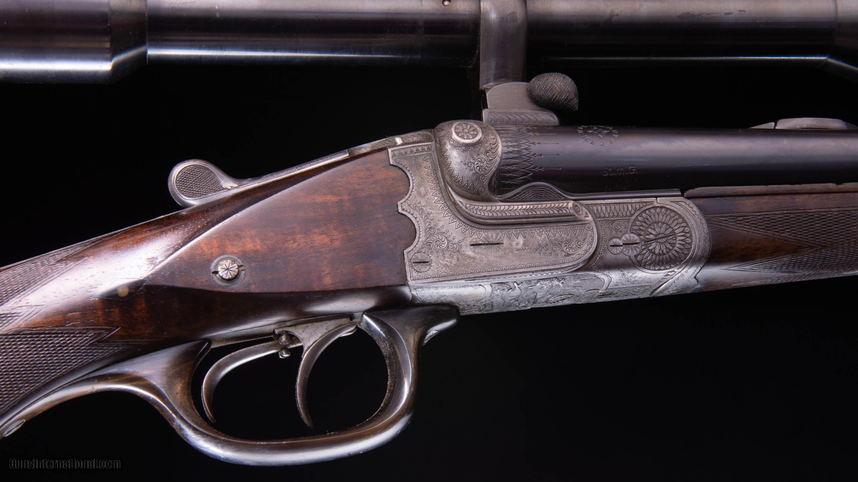 Lata 1910-1928 , Carl Lewerentz German 9.3x74R per war double rifle with scopes 2Skomentuj zdjęcie |