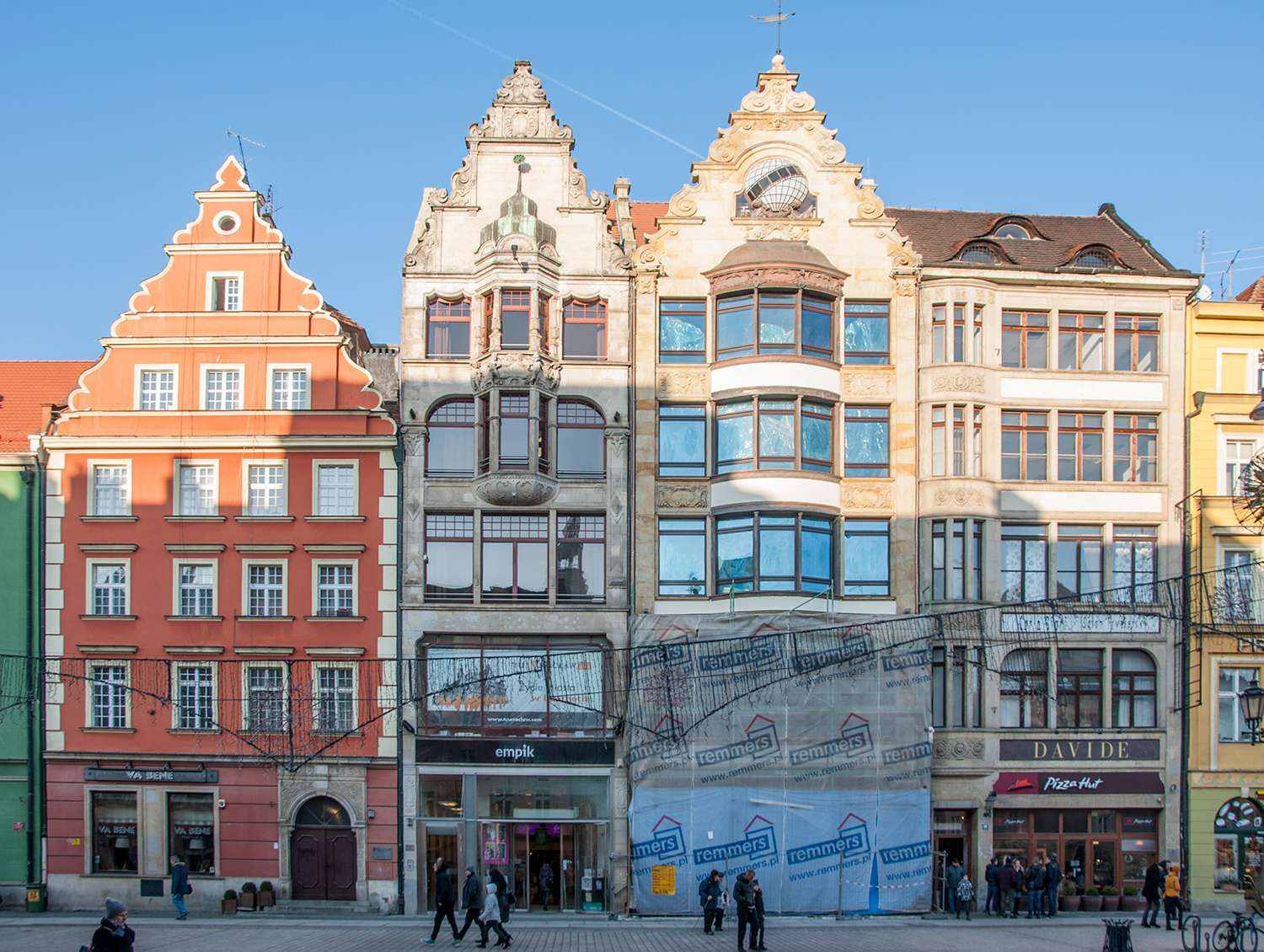 22 stycznia 2017 , Północna pierzeja Rynku (Targ Łakoci). Od lewej strony: Fragment kamienicy nr 52 (Pod Złotą Kotwicą), Kamienica nr 51 (Pod Złotym Półksiężycem), Kamienica nr 50, remont kamienicy nr 49, kamienica nr 48 (Pod Głową św. Jana), fragment kamienicy nr 47 (Szwedzka Sień)Skomentuj zdjęcie |