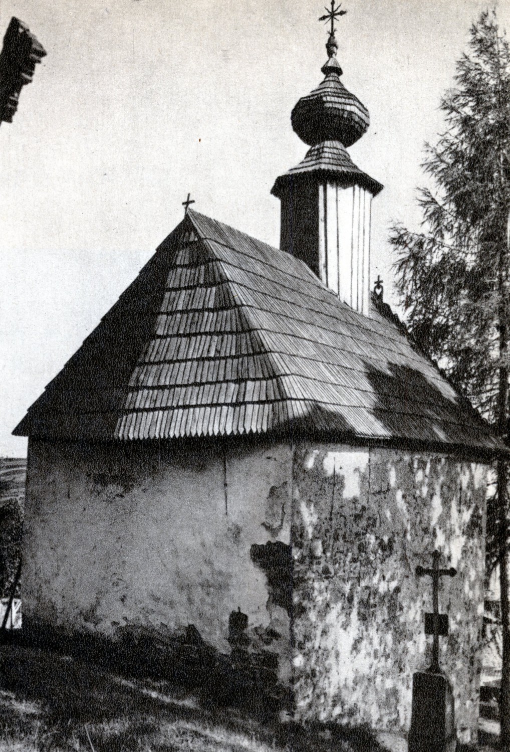 Lata 1950-1955 , Kapliczka murowana,późnobarokowa z roku 1787 w Łapszach WyżnychSkomentuj zdjęcie |