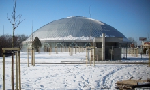 28 stycznia 2017 , Hala widowiskowo-sportowa w zimowej szacie. Końcowa faza remontu, widok od strony wschodniej.Skomentuj zdjęcie |