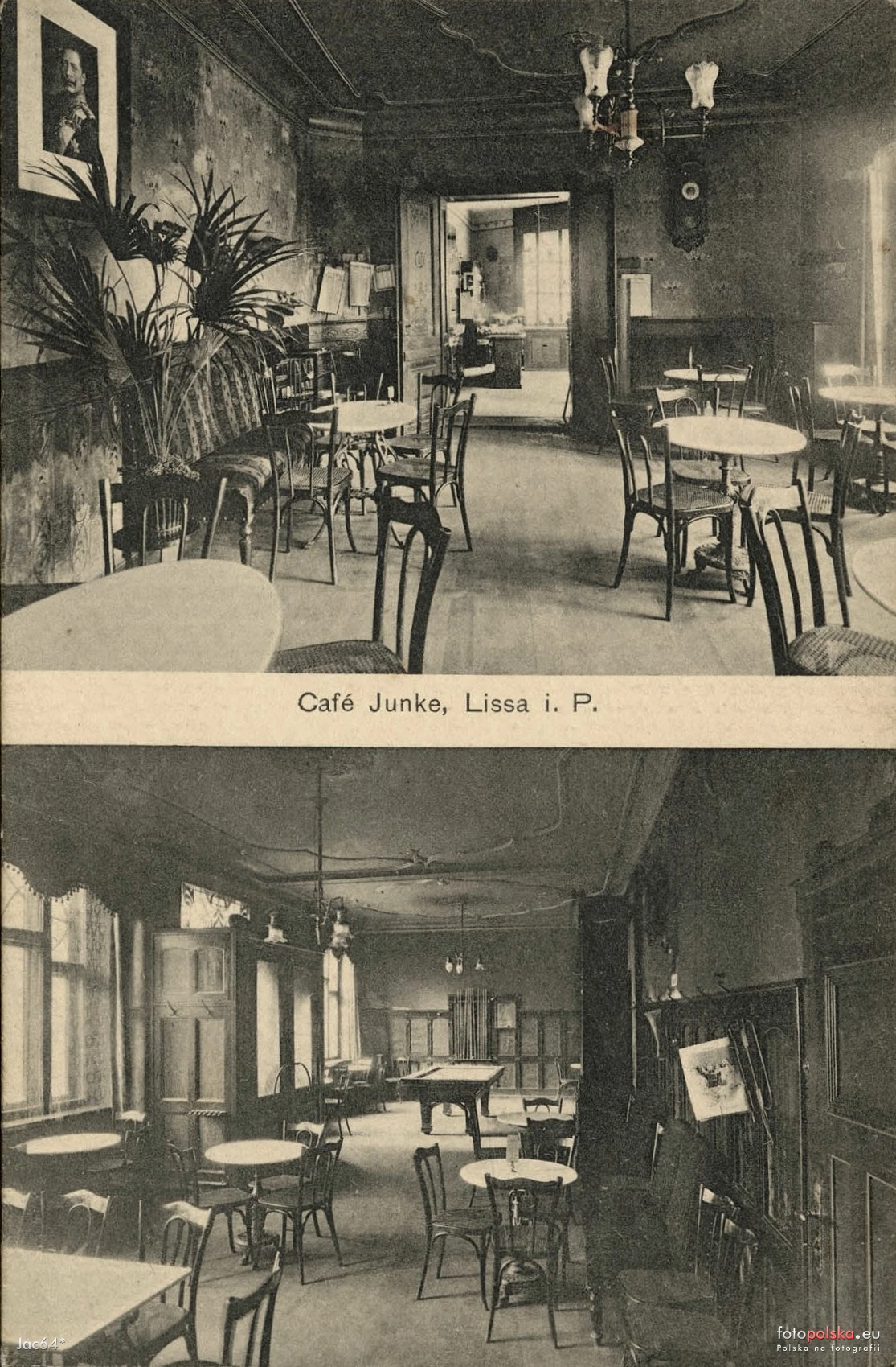 Lata 1905-1907 , Kawiarnia Junke mieszcząca się w narożnej kamienicy przy dzisiejszych ulicach Wolności oraz Niepodległości. Dawny adres: Schlossstrasse 21.Skomentuj zdjęcie