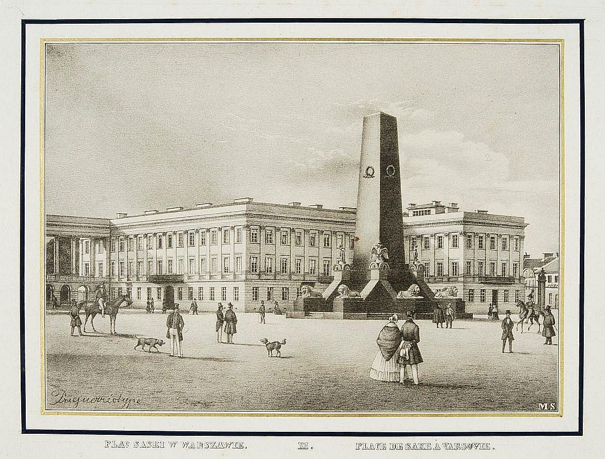 1841 , Pałac Saski oraz pomnik oficerów-lojalistów poległych w Noc Listopadową. Grafika autorstwa Maurycego Scholtza.Skomentuj zdjęcie |