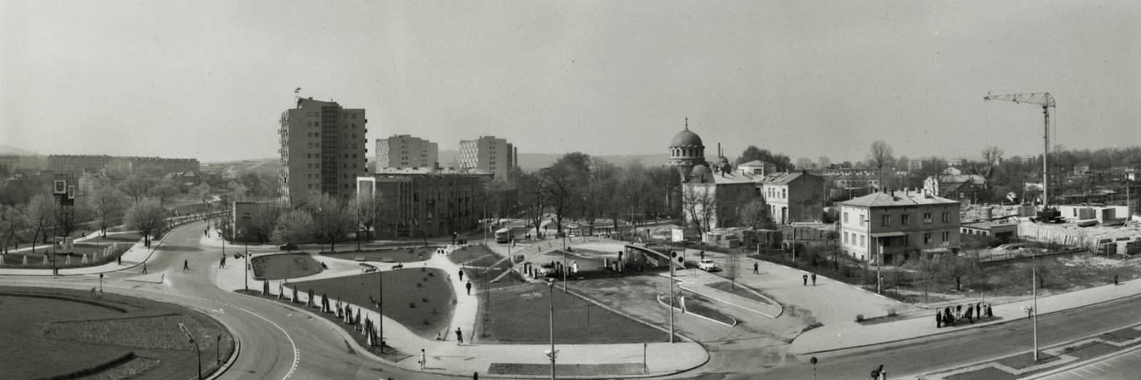 Lata 1968-1970 , Rondo Giedroycia (wtedy bez nazwy) i ulica Żytnia (wtedy Waligóry). Widok w kierunku południowym. Źródło:Skomentuj zdjęcie |