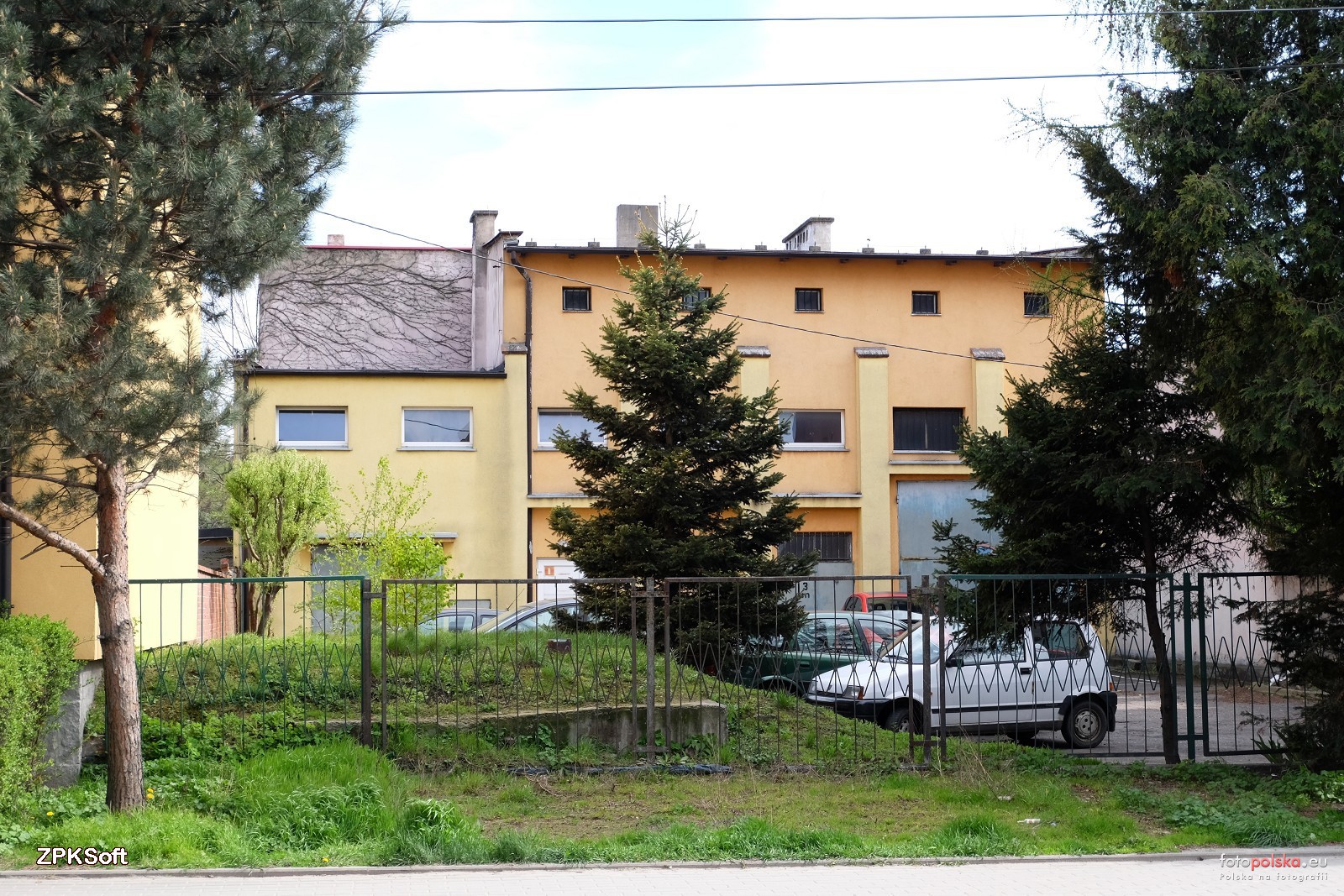 14 kwietnia 2017 , Schowany między domami jednopiętrowy budynek mieszczący firmy usługowe. Widok od zaplecza.Skomentuj zdjęcie
