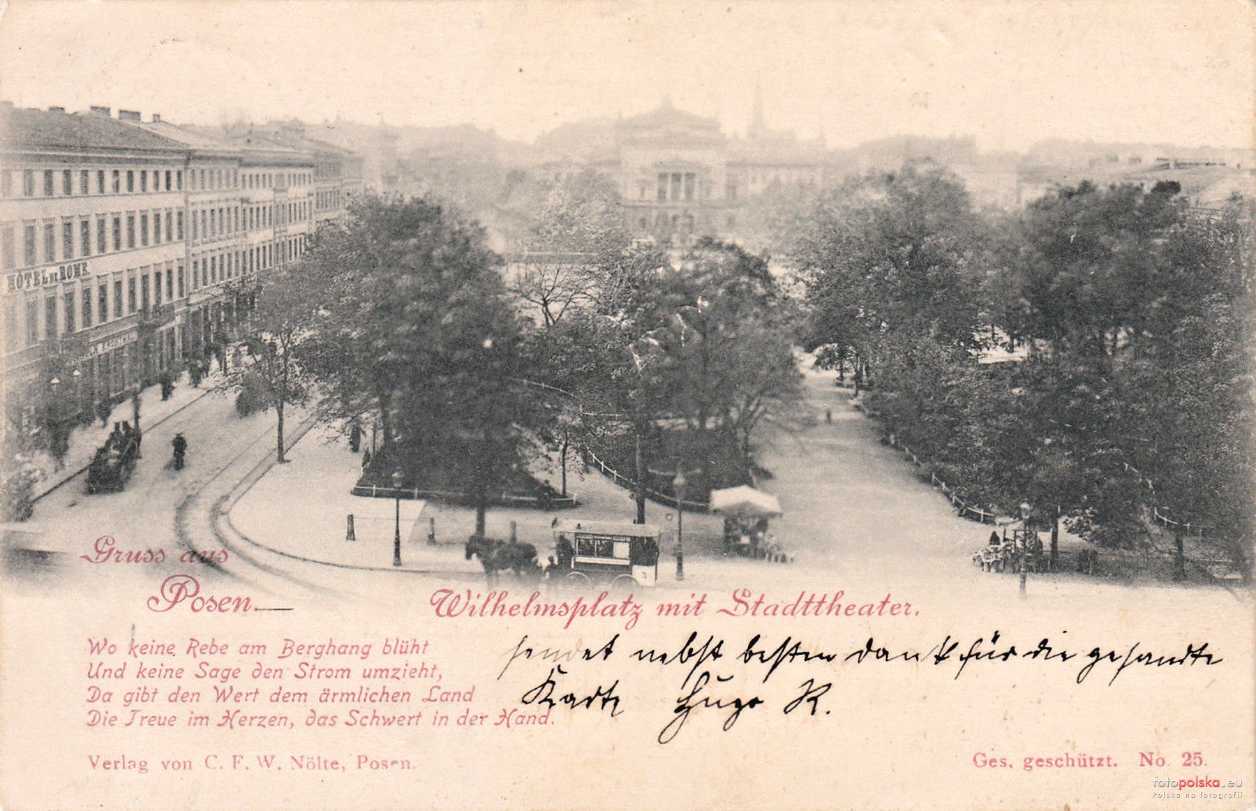 28 pobrań 1515 odsłon 6 średnia ocen Poprzednie i następne zdjęcia labeo7 Obiekty widoczne na zdjęciu pl. Wolności więcej zdjęć (291) Dawniej: Wilhelmsplatz Teren ten, należący w dawnych wiekach do przedmieścia Kondorfu, był w wieku XVI własnością Muszyńskich. Od nich otrzymał później nazwę "Musza Góra", zmienioną z czasem na "Mysza Góra". W roku 1780 stało na niej kilka chat. W roku 1794 założono tutaj drugie targowisko miejskie. Przy odbudowie miasta w roku 1804 stworzono wielki plac centralny, usuwając cmentarz żydowski, który graniczył z placem prawie na całej linii północnej placu. Niemcy nazwali plac "Wilhelmowskim". W czasach Księstwa Warszawskiego zwano go "placem Napoleona". Później Niemcy przywrócili pierwszą nazwę i utrzymywali ją do roku 1918. Od 16.06.1919r. plac zwie się "placem Wolności". Najważniejszy plac przypomina odzyskanie wolności, a ulice wokół niego wielkie również noszą miana. Nazwa do roku 1918 Wilhelmsplatz Nazwa do roku 1939 Plac Wilhelmowski, Plac Napoleona |
