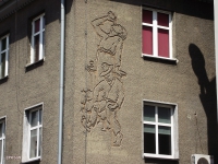 30 kwietnia 2017 , Południowo - wschodni narożnik kamienicy bloku śródrynkowego. Interesujący element dekoracyjny na budynku, ciekawy o tyle, że w obiekcie zwykle mieścił się bank. Szkoda, że usunięto słowną treść, zapewne niemiecką.Skomentuj zdjęcie