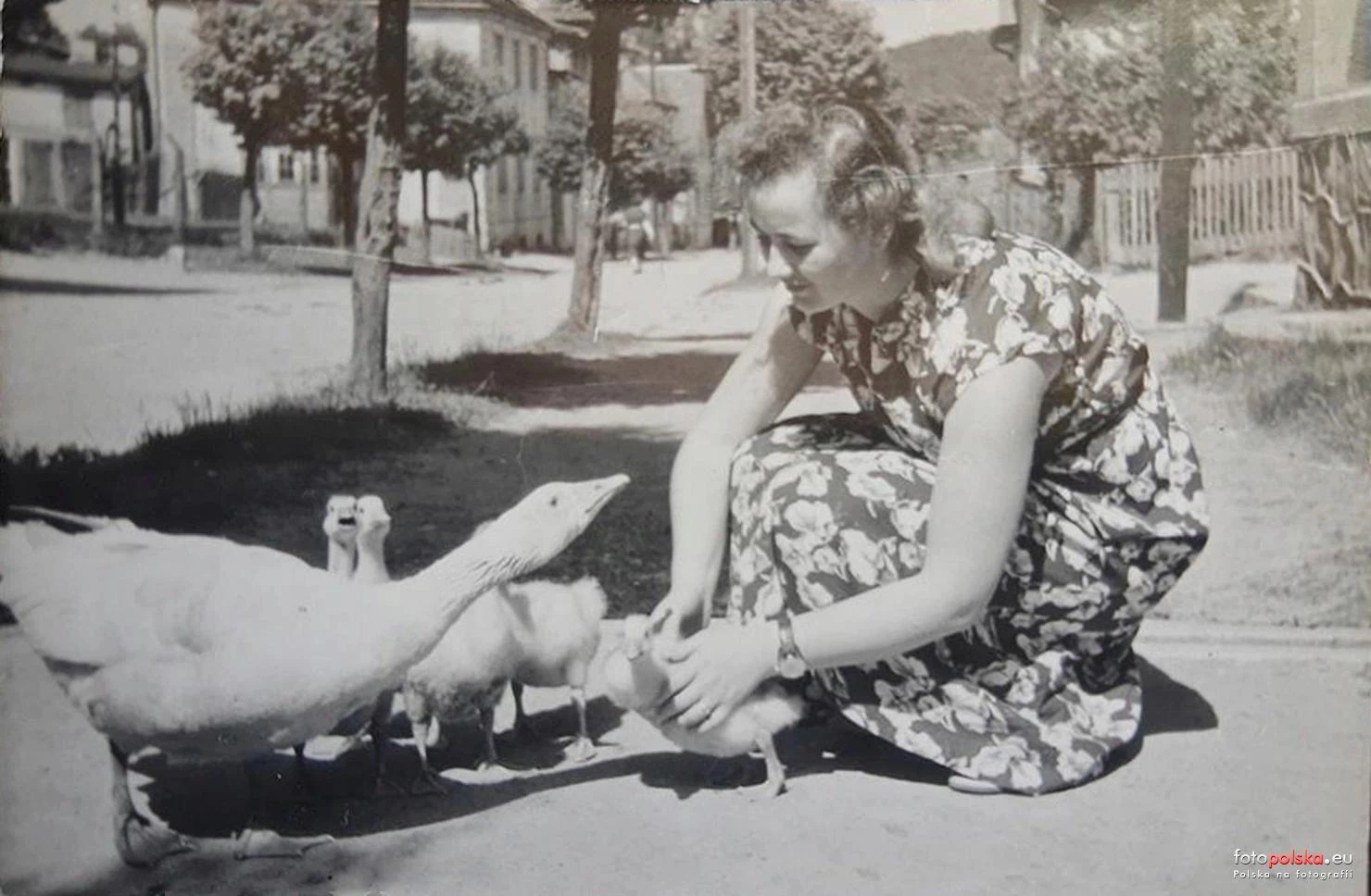 28 czerwca 1958 , Pani karmi gąski na ulicy Polanowa.Skomentuj zdjęcie