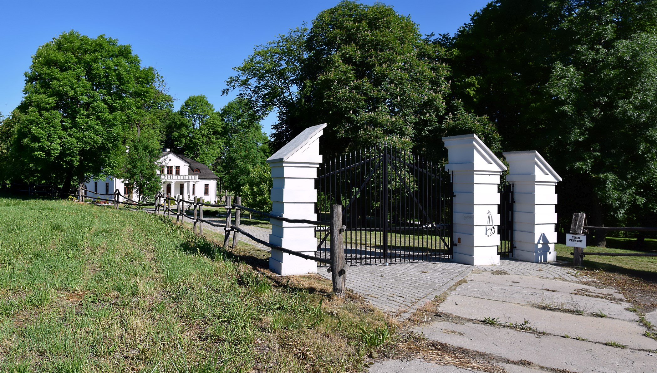 Dwór murowany z cegły czerwonej i kamienia na zaprawie wapienno-cementowej. Mury otynkowane, osadzone na fundamencie. Stropy drewniane ze ślepym pułapem, od dołu otynkowane. Ganek z tarasem podtrzymywanym przez kolumny toskańskie, na tarasie kamienna balustrada. Drzwi w większości dwuskrzydłowe, płycinowe, część drzwi przeszklona, drzwi frontowe w otworach sklepionych łukowo. Okna dwuskrzydłowe, 6-kwaterowe, w profilowanych obramieniach. Dach dwuspadowy naczółkowy, pierwotnie kryty dachówką, konstrukcja drewniana stolcowa, w części wschodniej i południowo-zachodniej facjaty. Obiekt wybudowany na rzucie prostokąta, dwutraktowy, szerokofrontowy, przy ścianie wschodniej ganek. Bryła sześcienna, parterowa, zwarta, podpiwniczona. Ściany elewacji wsparte na niskim cokole. Pod okapem profilowany gzyms. Wszystkie otwory w profilowanych obramieniach wystających przed lico muru, przy oknach wysunięte ławy podokienne. Elewacja wschodnia 7-osiowa, symetryczna, na osi ganek ze schodami, nad nim ganek z kamienna balustradą wspartą na czterech kolumnach toskańskich. Z ganku wejście w otworze sklepionym półkoliście. Na wysokości tarasu trójosiowa facjata z przeszkolonymi drzwiami w centrum. Naroża facjaty ujęte w lizeny, w szczycie lukarna. Elewacja południowa trójosiowa po lewej stronie drzwi jak w elewacji wschodniej, nad nimi krótki gzyms okapowy. W poddaszu trzy okna, z prawej strony lukarna. Elewacja zachodnia 7-osiowa, asymetryczna, dwoje przeszkolonych drzwi wskazuje na możliwość istnienia tu wcześniej tarasu lub balkonów. Po prawej stronie 1-osiowa facjata narożna z balkonem ze stalową balustradą. Naroża facjaty ujęte w lizeny biegnące przez całą wysokość budynku, w szczycie lukarna. Elewacja północna 3-osiowa, symetryczna z przeszklonymi drzwiami na osi. W szczycie okna, po bokach 2 lukarny. W przyziemiu okna piwnicy. Podział wnętrza częściowo zmieniony przez adaptację dworu na szkołę.