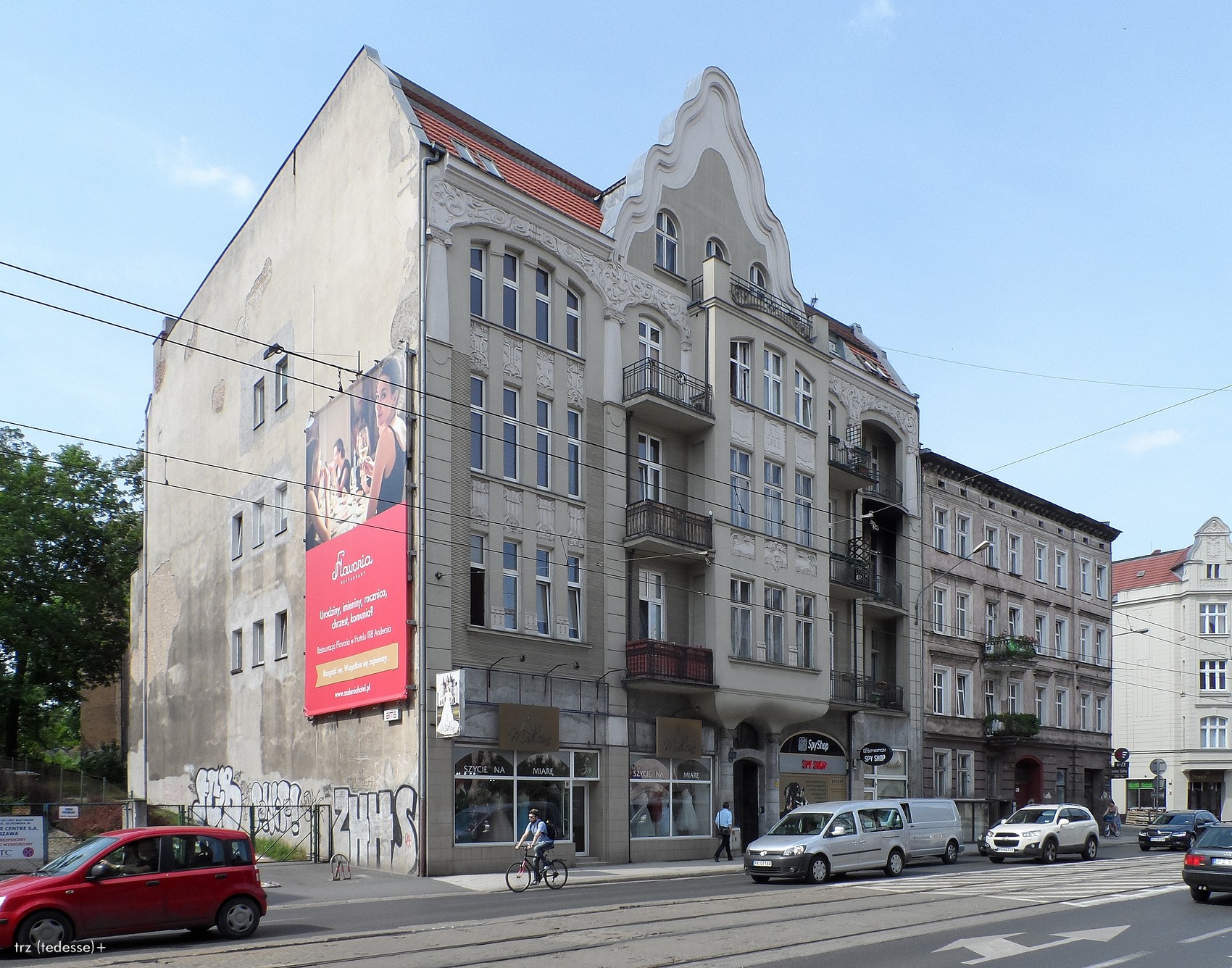 4 pobrania 506 odsłon 6 średnia ocen Poprzednie i następne zdjęcia trz (tedesse) Obiekty widoczne na zdjęciu Głogowska 32 więcej zdjęć (6) Zbudowano: 1905 Kamienica wzniesiona w 1905 r. przez mistrza budowlanego Waltera Czygana jako własny dom mieszkalny. Na frontonie budynku odnajdujemy datę jego powstania. ul. Głogowska więcej zdjęć (1748) Dawniej: Glogauerstrasse, Marszałka Focha, Chaussee v.Breslau Główną arterią komunikacyjną przebiegająca przez te obszary jest długa ulica Głogowska. Tędy dawnymi czasy biegła szosa na Głogów i Wrocław, z którymi Poznań utrzymywał ożywione stosunki handlowe. Przed usadowieniem się tutaj, w latach siedemdziesiątych zeszłego stulecia, urządzeń kolei wspomniana arteria wybiegała z Bramy Berlińskiej w lewo, Towarową i Składową, kierując się na południowy zachód. U schyłku zeszłego stulecia wzdłuż Głogowskiej, częściowo tylko zabudowanej, ciągnął się rów. Mniej więcej w okolicach ulicy Emilii Sczanieckiej kończyła się wówczas zabudowa zwarta, a dalej rozciągały się już tylko pola i łąki. Otwarta, rozległa przestrzeń pozwalała dostrzec z daleka w pobliżu dzisiejszej ulicy Chociszewskiego dwa wiatraki. |