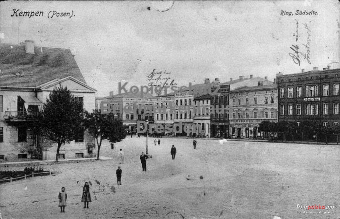 Lata 1900-1910 , Południowa strona Rynku w Kępnie.Skomentuj zdjęcie |