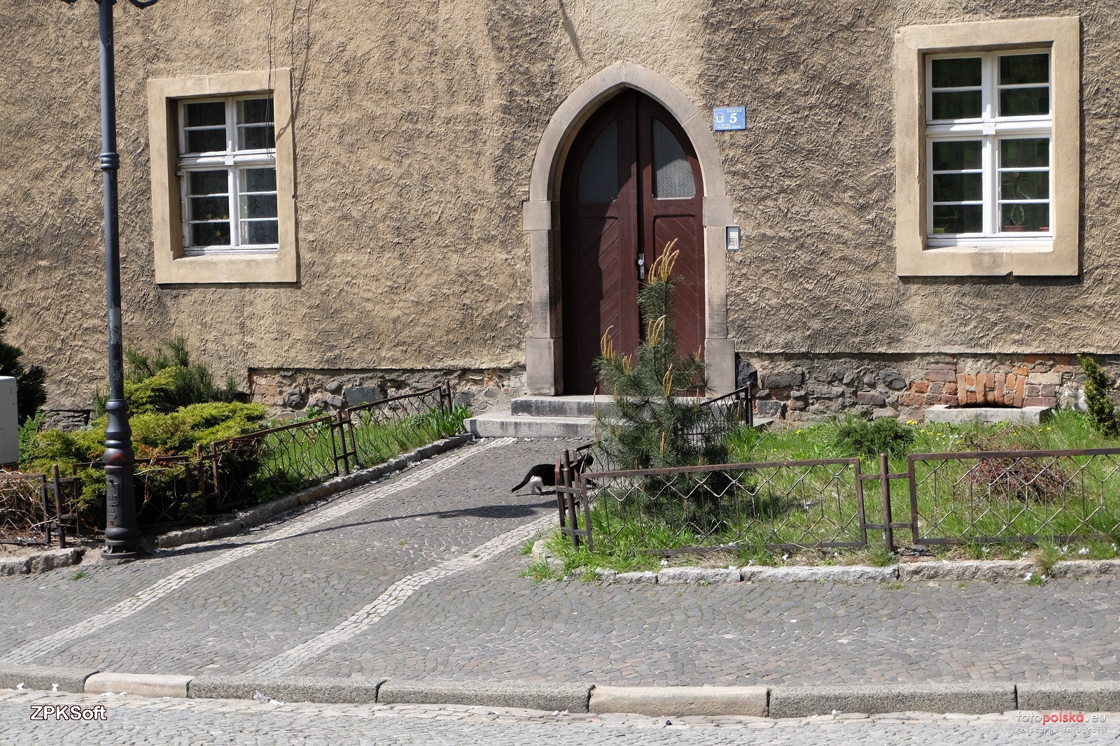 30 kwietnia 2017 , Budynek wzniesiony w 1565 r., w którym do 1881 r. mieściła się szkoła parafialna. Na ścianie frontowej oraz szczytach domu w 1925 r. wykonano dekorację w formie sgrafitto. Na zdjęciu wejście do budynku, obecnie mieszkalnego.Skomentuj zdjęcie
