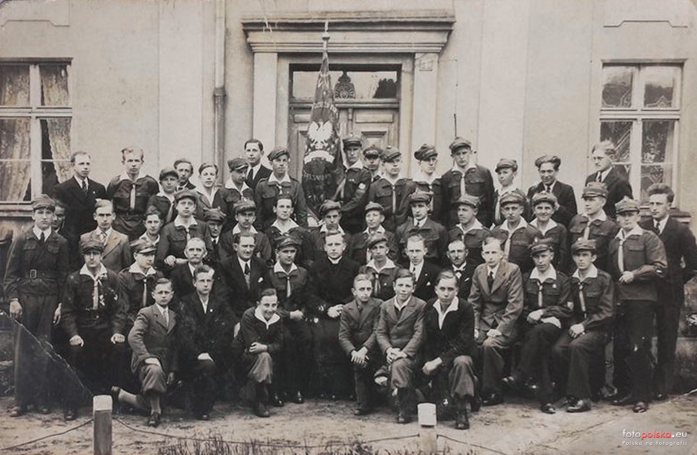 1928 , Grupa harcerzy w Zbąszyniu przed wikariatem.Skomentuj zdjęcie |