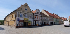 17 maja 2017 , Zachodnia pierzeja Rynku ze starymi piętrowymi kamienicami. Od lewej Kolejowa 2 ( d. Rynek 15), dalej kolejno nr 14, 15, 16, 17 (z apteką) i Kościelna 1 ( d. Rynek 19b i Rynek 20).Skomentuj zdjęcie |