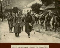 1915 , Jarosław ul. Słowackiego. Parterowy budynek to nr 19. Dalej widoczne kamienice pod numerem 15 i 13. |