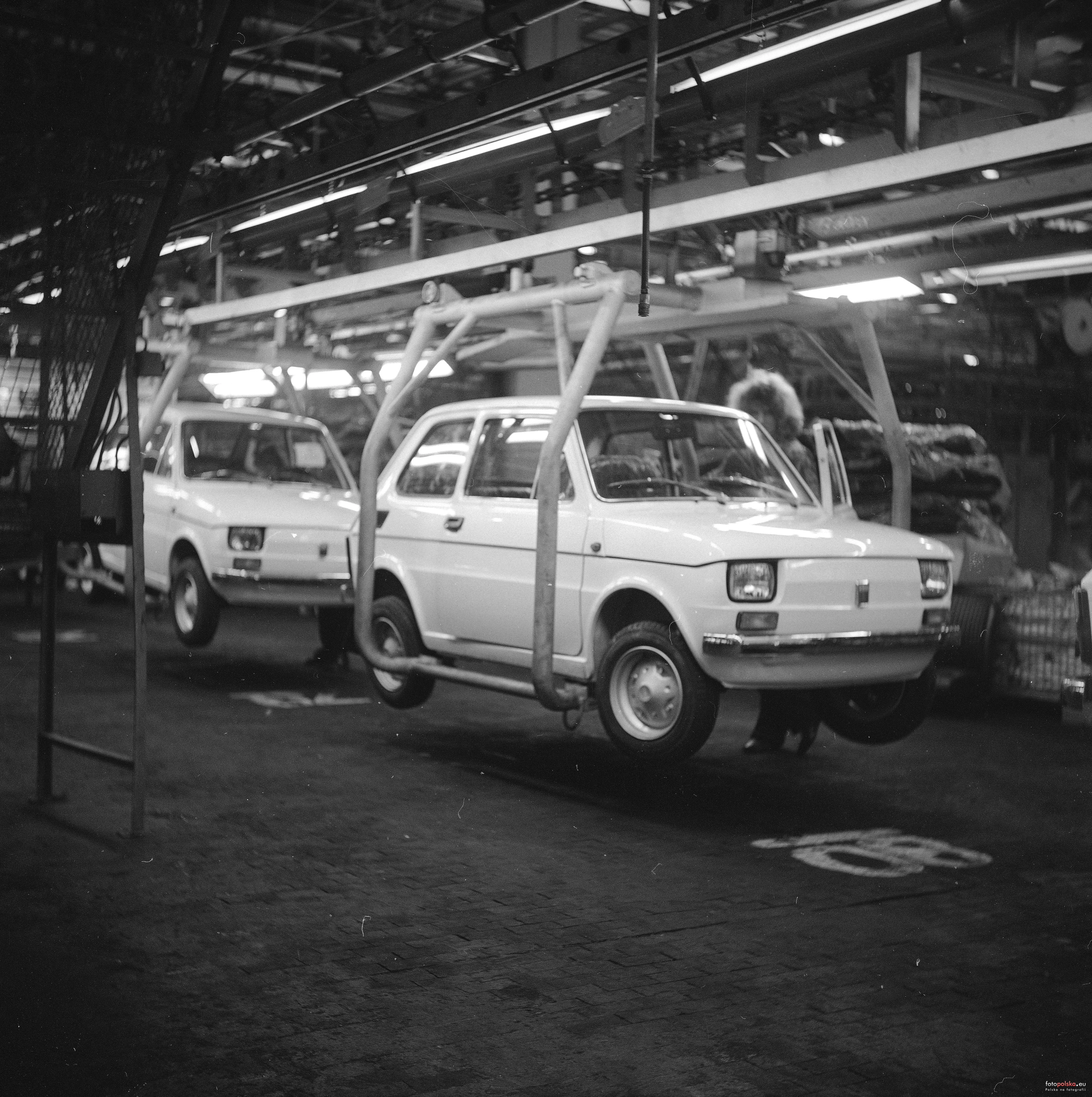 20 października 1975 , Samochody Fiat 126 na taśmie montażowej.Skomentuj zdjęcie