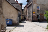 18 lipca 2017 , Ulica Środkowa widziana w kierunku ul. Kościelnej i dalej, widoczne łuki oporowe na odcinku prowadzącym między kamienicami aż do ul. Przyjaciół. Po prawej kącik wypoczynkowy dla mieszkańców kamienicy przy Kościelnej 6.Skomentuj zdjęcie
