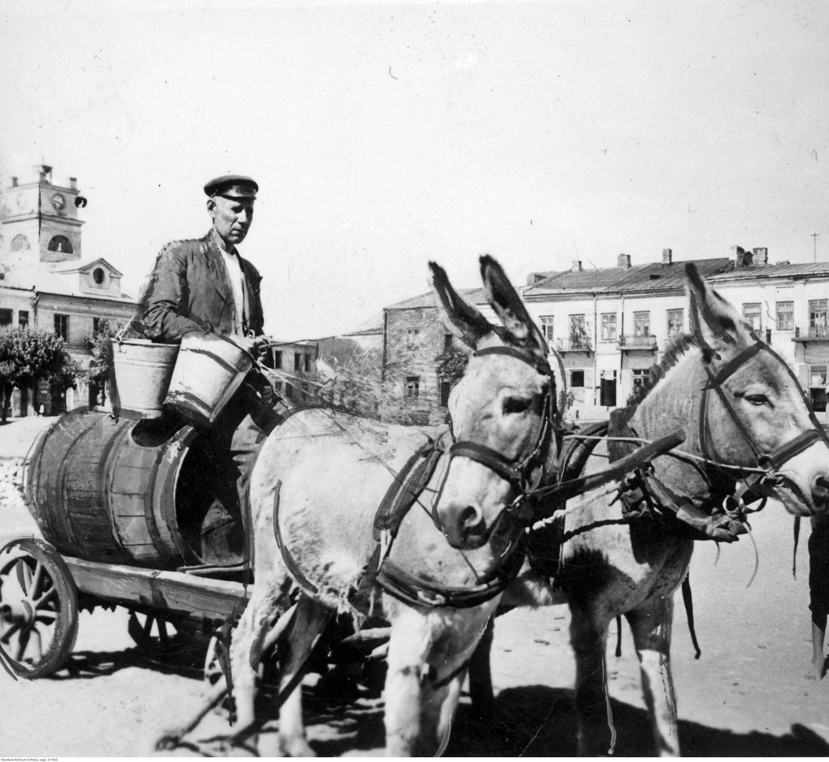 sierpień 1942 , Handlarz na wozie zaprzężonym w osły na rynku w GrójcuSkomentuj zdjęcie