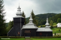 3 pobrania 458 odsłon 6 średnia ocen Poprzednie i następne zdjęcia ireneusz1966 Obiekty widoczne na zdjęciu Cerkiew św. Dymitra więcej zdjęć (29) Zbudowano: 1764 Cerkiew św. Dymitra w Czarnej została zbudowana w 1764 r., przekształcona w 1. poł. XIX w (m.in. wydłużono prezbiterium), remontowana w 1930 i w latach 90. XX w. Jest to cerkiew łemkowska, typ północno-zachodni, wariant starszy, orientowana, drewniana, konstrukcji zrębowej. Trójdzielna: wydłużone prezbiterium, szersza nawa i babiniec na planach kwadratów. We wschodniej, dobudowanej części prezbiterium zakrystia. Wieża konstrukcji słupowo-ramowej o pochyłych ścianach, z lekko nadwieszoną izbicą, przy niej od zachodu przedsionek. Słupy wieży obejmują babiniec. Ściany obite gontem, izbica wieży szalowana pionowym deskowaniem, dachy blaszane. Dach nad prezbiterium kalenicowy, trójpołaciowy, nad nawą namiotowy, dwukrotnie łamany, z dodatkową kalenicą, która łączy go ze ścianą wieży, nad wieżą namiotowy. Nad wszystkimi częściami jednolite hełmy baniaste (większy nad wieżą, pozostałe mniejsze) z pseudolatarniami i żelaznymi krzyżami. W nawie i prezbiterium kopuły namiotowe, nad nawa wzmocniona ściągiem krzyżowym. Nad babińcem strop płaski. Polichromia ornamentalna i architektoniczna z 1. poł. XIX w. Kompletny, barokowy ikonostas x XVIII w. Na północnej ścianie ołtarzyk z ikoną Hodigitria z poprzedniego ikonostasu z XVII w. Na klejmach postacie proroków ze zwojami pism, wśród nich, u dołu, św. Anna i św. Joachim. Obecnie budynek służy jako kościół filialny parafii rzymskokatolickiej w Brunarach pod tym samym wezwaniem. Teren przy cerkwi otoczony murkiem kamiennym z bramką. Powyżej cerkwi na czynnym cmentarzu kilka dawnych nagrobków kamiennych. (opis pochodzi z wikipedii ) |