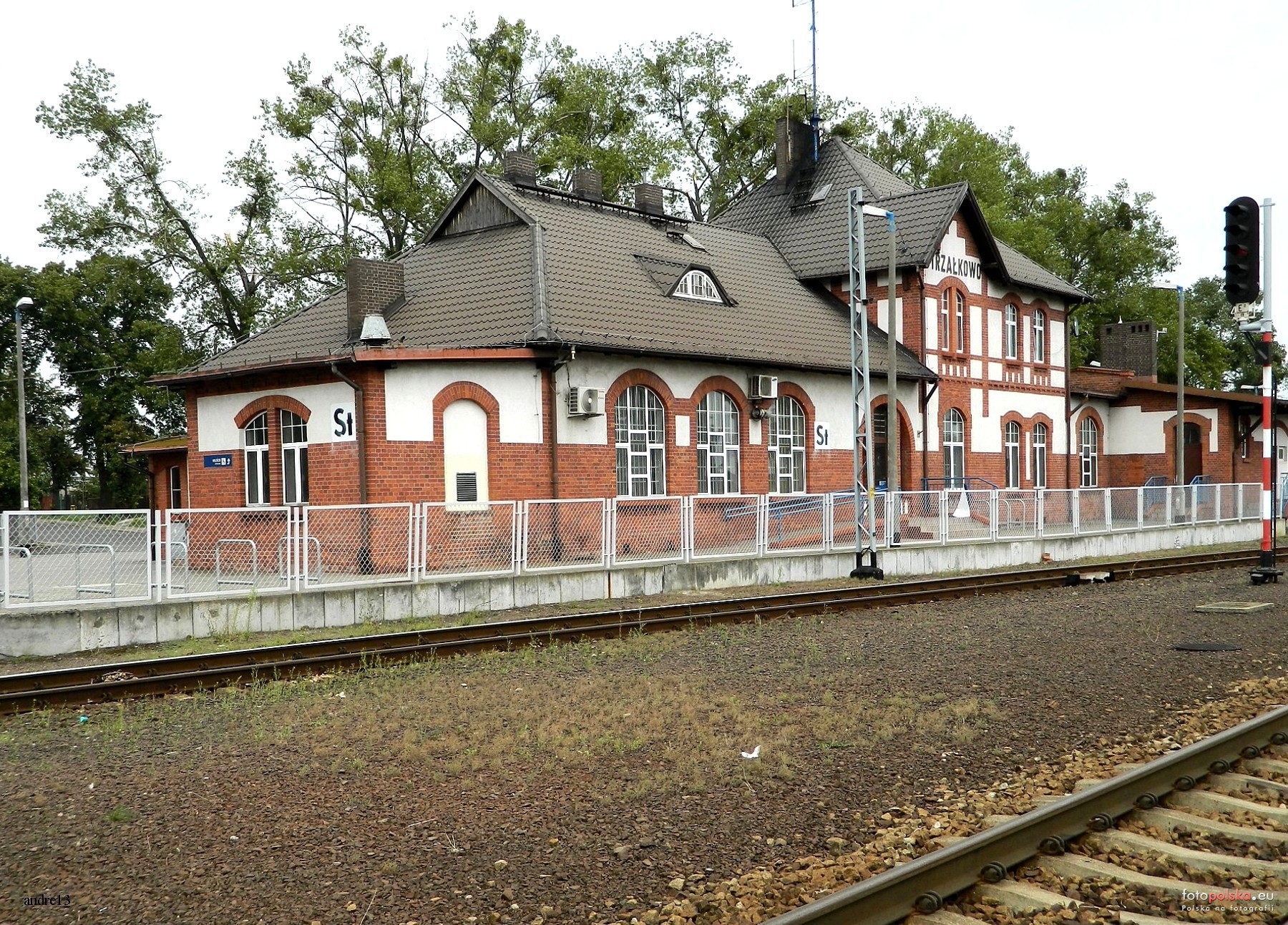 3 pobrania 707 odsłon 6 średnia ocen Poprzednie i następne zdjęcia andre13 Obiekty widoczne na zdjęciu Stacja kolejowa Strzałkowo więcej zdjęć (2) Zbudowano: 1888 Strzałkowo przez ponad trzydzieści lat (od 1888 roku) było stacją końcową na linii, prowadzącej z kierunku Wrześni. Dopiero w 1921 roku oddano do użytku linię Kutno - Strzałkowo, która stała się elementem najkrótszego połączenia Poznania z Warszawą. W Strzałkowie zbudowano dość dużą stację, obsługującą liczne bocznice. W latach 90. została ona zmodernizowana w ramach przebudowy linii E20. Zbudowano dwa wysokie, dwukrawędziowe perony. Liczbę torów głównych zredukowano do czterech. Częściowo zmodernizowano również tory boczne, wśród których znajduje się kilka bocznic. Ze stacji biegnie także wybudowany w ramach modernizacji linii tor dojazdowy do bocznic na zlikwidowanej stacji Słupca (obecnie funkcjonuje tam także przystanek osobowy). Tor ten prowadzi także do bazy PKP Energetyka. Ruch pociągów prowadzony jest z nastawni "St", która znajduje się w budynku dworca i wyposażona jest w urządzenia komputerowe typu Ebilock. Z nastawni obsługuje się także rogatki na dwóch przejazdach kolejowych. Stralkowo 1888 - 1919 Strzałkowo 1919 - 1939 Stralkowo 1939 - 1942 Stralkau 1942 - 1945 Strzałkowo od 1945 Dworzec kolejowy więcej zdjęć (8) ul. Dworcowa więcej zdjęć (12) |