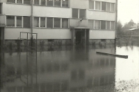 sierpień 1977 , Zalane podwórko podczas powodzi przy ul. Obrońców Westerplatte.Skomentuj zdjęcie |