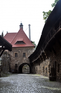 Brama dziedzińca dolnego więcej zdjęć (16) Dziedziniec dolny (międzymurze) więcej zdjęć (52) Zamek Czocha więcej zdjęć (349) Atrakcja turystyczna Zbudowano: 1241-1247 Dawniej: Schloss Tzschocha Zabytek: 100/790 z 26 października 1960 Zamek Czocha – obronny zamek graniczny położony w miejscowości Sucha, gmina Leśna, nad Zalewem Leśniańskim na Kwisie w polskiej części Łużyc Górnych. Pierwotna nazwa brzmiała prawdopodobnie Czajków (1329: castrum Caychow), przed 1945 Tzschocha. Zamek posadowiony jest na gnejsowych skałach należących do metamorfiku izerskiego. Najstarszą część stanowi, stojący przy głównych bramach (istnieją dwie, starsza dolna i nowa górna), stołp – później obudowany częścią mieszkalną. Z części mieszkalnej najstarszy jest północny fragment. Powstał jako warownia graniczna na pograniczu śląsko-łużyckim w latach 1241–1247 z rozkazu króla czeskiego Wacława I. W 1253 przekazany biskupowi miśnieńskiemu von Weisenow (Łużyce były wówczas częścią korony czeskiej). W 1319 roku jako posag wraz z okolicznymi ziemiami został włączony do księstwa Henryka I jaworskiego. Po śmierci krewnego w 1346 przejął go, wraz z całym księstwem zmarłego, Bolko II Mały, książę świdnicko-jaworski. Po śmierci księżnej Agnieszki, wdowy po Bolku, na mocy układu o przeżycie z cesarzem i królem Czech Karolem IV wrócił do Czech. Od 1389–1453 w dobrach rycerskich rodów von Dohn i von Klüks. Na początku XV wieku bezskutecznie oblegany przez husytów, ostatecznie zdobyty przez oddział Czirnina w 1427 pod nieobecność właścicieli. Odbity krótko później. Zakupiony w 1909 roku przez drezdeńskiego producenta wyrobów tytoniowych (cygar) Ernsta Gütschowa za 1,5 mln marek, do 1912 został przebudowany przez znanego architekta berlińskiego Bodo Ebhardta zgodnie z wyglądem zachowanym na rycinie z 1703 roku. Podczas przebudowy zniszczono jednak wiele najstarszych fragmentów kompleksu. W dawnej fosie urządzono zwierzyniec. Gütschow utrzymywał dobre stosunki z dworem carskim, a po rewolucji z rosyjskimi emigrantami, od których skupował różne przedmioty o wysokiej wartości artystycznej. W zamku mieszkał do marca 1945 roku. Opuszczając zamek wywiózł najcenniejszą część wyposażenia. W latach II wojny w zamku mieściła się szkoła szyfrantów Abwehry. Prawdopodobnie przechowywano tu urządzenie do dekryptażu depesz radzieckich (operacja o kryptonimie Ryba-Miecz). Po II wojnie światowej zamek przechodził różne koleje. Był wielokrotnie okradany, zarówno przez Rosjan jak i rodzimych szabrowników, z mebli i wyposażenia. Największej kradzieży dopuścił się 1 lutego 1946 roku burmistrz Leśnej – Kazimierz Lech wspólnie z Krystyną von Saurma – zamkową bibliotekarką, która odkryła zamkowy schowek – wywożąc pełną ciężarówkę mienia zamkowego (insygnia koronacyjne Romanowów, 60 popiersi carów rosyjskich, 100 ikon, zastawy porcelanowe, biżuterię, obrazy), z którą udało mu się przedostać do amerykańskiej strefy okupacyjnej. Następnie przez krótki czas mieszkali w nim uchodźcy z Grecji, którzy w sali rycerskiej trzymali zwierzęta gospodarskie, dopełniając tym samym dzieła dewastacji. Od 1952 Wojskowy Dom Wczasowy i z tego powodu obiekt był utajniony i nie występował na mapach. Od września 1996 publicznie dostępny jako ośrodek hotelowo-konferencyjny. Właścicielem w 2006 roku była Agencja Mienia Wojskowego. Malownicze zabudowania zamku były tłem powstania filmów: Gdzie jest generał, Wiedźmin, Legenda, Poza Lasem Sherwood (Beyond Sherwood Forest) oraz seriali Tajemnica twierdzy szyfrów, Dwa światy (Spellbinder) oraz Pierwsza miłość. Źródło |