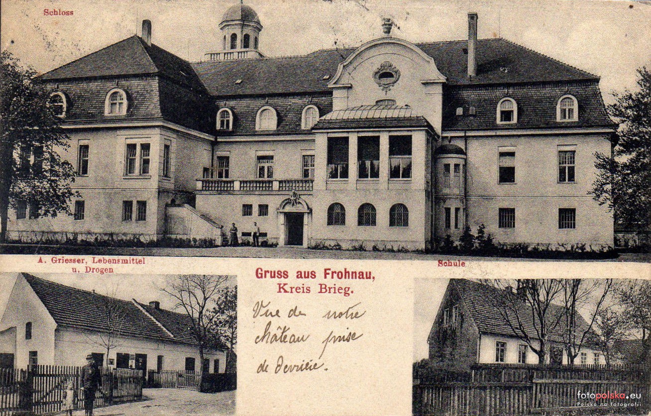 Lata 1905-1925 , Wronów na widokówce - pałac, sklep i szkoła.Skomentuj zdjęcie |
