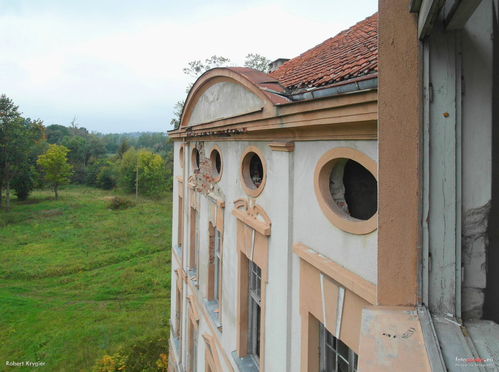 1 pobranie 690 odsłon 6 średnia ocen Poprzednie i następne zdjęcia † Yanek Obiekty widoczne na zdjęciu Dwór w Swarożynie więcej zdjęć (11) Zbudowano: 1806 Neoklasycystyczny dwór w Swarożynie został zbudowany w 1806 roku z fundacji ówczesnych właścicieli majątku – von Versnów. Powstał wówczas murowany, piętrowy budynek z użytkowym poddaszem, wzniesiony na planie zbliżonym do kwadratu, nakryty czterospadowym dachem. W osi elewacji frontowej znajduje się główne wejście, poprzedzone malutkim gankiem. Fasada zwieńczona jest łukowatym naczółkiem. Okna poddasza mają kształt owalny, a pozostałe prostokątny. Elewacja tylna również jest zwieńczona łukowatym naczółkiem. Wraz z budową rezydencji założono wokół niej park krajobrazowy. Całość ogrodzono murowanym ogrodzeniem z bramą wjazdową od drogi. Od bramy do pałacu prowadzi aleja lipowa. Przez kolejne lata majątek w Swarożynie zmieniał swoich właścicieli, w latach 1872-91 należał do rodziny Wernikowskich i w tym czasie był jednym z największych majątków w okolicy. W 1825 roku właścicielem zostaje Wilhelm von Paleske, a jego potomkowie mieszkają tu do 1945 roku. Po wojnie, po ucieczce ostatniego właściciela do Hamburga, obiekt wykorzystany został głównie na biura PGR-u i mieszkania dla jego pracowników. W latach 70-tych do lewego boku dostawiono szpetną, dwupiętrową dobudówkę. Obecnie od końca lat 90-tych XX wieku zrujnowany wewnątrz pałac znajduje się w prywatnych rękach i oczekuje na kapitalny remont. Swarożyn jest położony 11 km na północny-wschód od Starogardu Gdańskiego, przy drodze nr 22 do Malborka. Założenie znajduje się tuż przy drodze, po jej południowej stronie Za: ul. Rolna więcej zdjęć (11) |