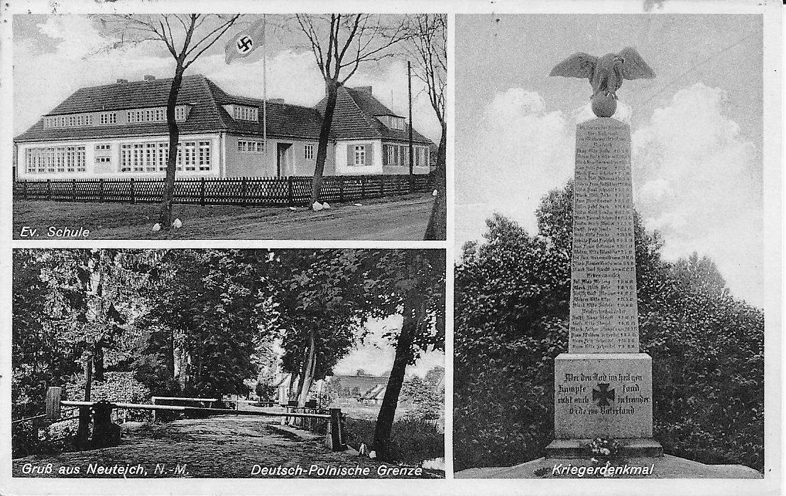 Lata 1930-1936 , Szkoła ewangelicka, pomnik i przejście graniczne niemiecko - polskie.Skomentuj zdjęcie |