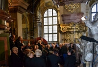 0 pobrań 207 odsłon 6 średnia ocen Poprzednie i następne zdjęcia Wacław Grabkowski Obiekty widoczne na zdjęciu Wnętrza więcej zdjęć (87) Kościół Najświętszego Imienia Jezus (Kościół Uniwersytecki) więcej zdjęć (76) Architekt: Johann Georg Knoll Atrakcja turystyczna Zbudowano: 1689-98 Dawniej: Kościół św. Macieja Zabytek: 9 z 26.11.1947 oraz 85 z 6.02.1962 Świątynię zbudowali jezuici w latach 1689 – 1698, a prace nad jej wyposażeniem i dekoracją trwały jeszcze przez kolejne niemal 40 lat, aż do końca 1734 roku. ARCHITEKTURA ZEWNĘTRZNA. Architektura zewnętrzna kościoła jest zwarta, jednolita i bardzo oszczędna w użyciu form. Kościół został zorientowany, tzn. posiada prezbiterium od strony wschodniej. Gdy powstawał należał do budowli nowoczesnych, jasnych, z dużymi oknami i bogatym, jednolicie opracowanym wystrojem. W zwieńczeniu wschodniej elewacji znajduje się wykonany ze złoconej miedzi znak jezuitów – IHS w płomieniach glorii, nad nawą dwukondygnacyjna sygnaturka. ARCHITEKTURA WNĘTRZA. We wnętrzu harmonijnie połączono architekturę, malarstwo oraz rzeźbę monumentalną. W dekoracji ścian, filarów, pilastrów, ołtarzy zastosowano jako imitację kamienia barwiony gips – tzw. stucco lustro, dzięki któremu rzeźby sprawiają wrażenie wykutych z białego marmuru. Głowice kolumn, gzymsy, ramy obrazów są pozłacane złotem płatkowym. Szczególną rolę pełni w tym kościele jego naturalne oświetlenie. POLICHROMIE. Autorem malowideł o wyjątkowej randze artystycznej był nadworny malarz cesarski, wybitny wiedeński twórca Johann Michael Rottmayer von Rosenbrunn. Dekorował on m.in. tak prestiżowe fundacje sakralne jak kościół Świętej Trójcy w Salzburgu czy kościół św. Karola Boromeusza w Wiedniu. Posługując się techniką fresku mokrego (al fresco) komponował monumentalne malowidła iluzjonistyczne. PREZBITERIUM. Wypełniający szczelnie całą ścianę wschodnią kościoła monumentalny ołtarz główny z 1726 roku zaprojektował artysta – jezuita Christoph Tausch, który wykonał także malowidło w jego centralnej części, przedstawiające scenę obrzezania Dzieciątka Jezus w świątyni. Scena ta, zgodnie z opisem Ewangelii św. Łukasza (Łk 2, 21), mająca miejsce 8 dni po narodzinach Mesjasza, wiązała się z nadaniem mu imienia Jezus i jako taka spina cały bogaty program teologiczny wnętrza, związany z Najświętszym Imieniem Jezus. Obraz, namalowany na płótnie o wymiarach ok. 7 na 3,5 metra, w centralnej części ukazuje arcykapłana dokonującego aktu obrzezania. Towarzyszą mu po bokach Maryja i Józef, a górnej partii malowidła, wśród obłoków widoczna jest postać błogosławiącego Boga Ojca w otoczeniu chórów anielskich. W jednym z mężczyzn, będących świadkami ceremonii – chodzi o diakona ubranego w komżę i podającego nóż arcykapłanowi – możemy dopatrzyć się kryptoportretu autora obrazu Christopha Tauscha. W zwieńczeniu ołtarza dostrzec można postacie anielskie adorujące symboliczne przedstawienie Imienia Jezus – IHS. Pomiędzy kolumnami umieszczono dwie duże rzeźby. Po lewej stronie postać kobieca z kielichem i księgą, z napisem Terrestrum symbolizuje Kościół Triumfujący. Adorująca ją postać z kulą ziemską w dłoni obrazuje całą społeczność katolicką Śląska. Śląsk po łacinie to Silesia (rodzaj żeński), stąd postać ta jest kobietą. Niektórzy historycy utożsamiają ją z Karoliną – ostatnią z rodu Piastów, która zmarła w 1711 roku po zmianie wyznania z kalwińskiego na katolickie. Po prawej stronie, z napisem Infernorum kobieta z krzyżem i wzniesioną ręką, przedstawia Kościół Walczący. Postać pochylona jest nad upadającym człowiekiem symbolizującym herezję bądź istoty podziemne. Ołtarz ten należy do typowych przedstawień zgodnych z myślą Soboru Trydenckiego, o silnej wymowie kontrreformacyjnej. NAWA. Pomiędzy nawą a prezbiterium znajdują się dwie umieszczone po bokach duże figury. Rzeźba po stronie północnej – z lewej strony przedstawia postać św. Ignacego Loyoli – założyciela zakonu jezuitów, z siedzącym u jego stóp chłopcem, symbolizującym młodość świętego. Rzeźba po stronie południowej – z prawej strony przedstawia postać św. Franciszka Ksawerego – apostoła Indii, który chrzci młodego Hindusa. Nad tymi figurami, na gzymsach dźwigających łuk tęczowy, znajdują się figury aniołów. Anioł z lewej strony rzuca ogniste płomienie, z prawej trzyma kadzielnicę. SKLEPIENIE. W centralnej części sklepienia nawy znajduje się ogromna kompozycja, przedstawiająca adorację Najświętszego Imienia Jezus przez postacie z Nowego Testamentu, świętych i założycieli zakonu jezuitów oraz ludy czterech znanych wtedy kontynentów. W centrum, na tle otwartego nieba ukazano złoty rydwan ozdobiony napisem IHS w glorii (pierwsze trzy litery greckiego imienia Jezus, godło zakonu jezuitów, którego znaczenie w tradycji Kościoła odczytywane jest także jako skrót zawołania Iesus Hominum Salvator – Jezus Zbawiciel Ludzi), ciągnięty przez symbole czterech ewangelistów: woła, lwa, orła oraz uskrzydloną postać ludzką. Na rydwanie stoi Dzieciątko Jezus, ukazane z symbolami zmartwychwstania. Adorują je zastępy świętych i apostołów skupionych wokół Maryi, ukazanej jako orędowniczka, oraz liczne grono jezuitów, m.in. założyciele zakonu święci Ignacy Loyola i Franciszek Ksawery. Wokół tego malowidła możemy zobaczyć iluzjonistycznie namalowaną balustradę, za którą stoją współczesne artyście postacie, reprezentujące ludy czterech kontynentów: Europy, Azji, Afryki i Ameryki (Północna i Południowa traktowane jako jeden kontynent), którym towarzyszą odpowiadające im zwierzęce symbole: koń (Europa), wielbłąd (Azja), lew (Afryka), krokodyl (Ameryka). Ludy pozaeuropejskie są namalowane w konwencji portretu zbiorowego, zgodnie
