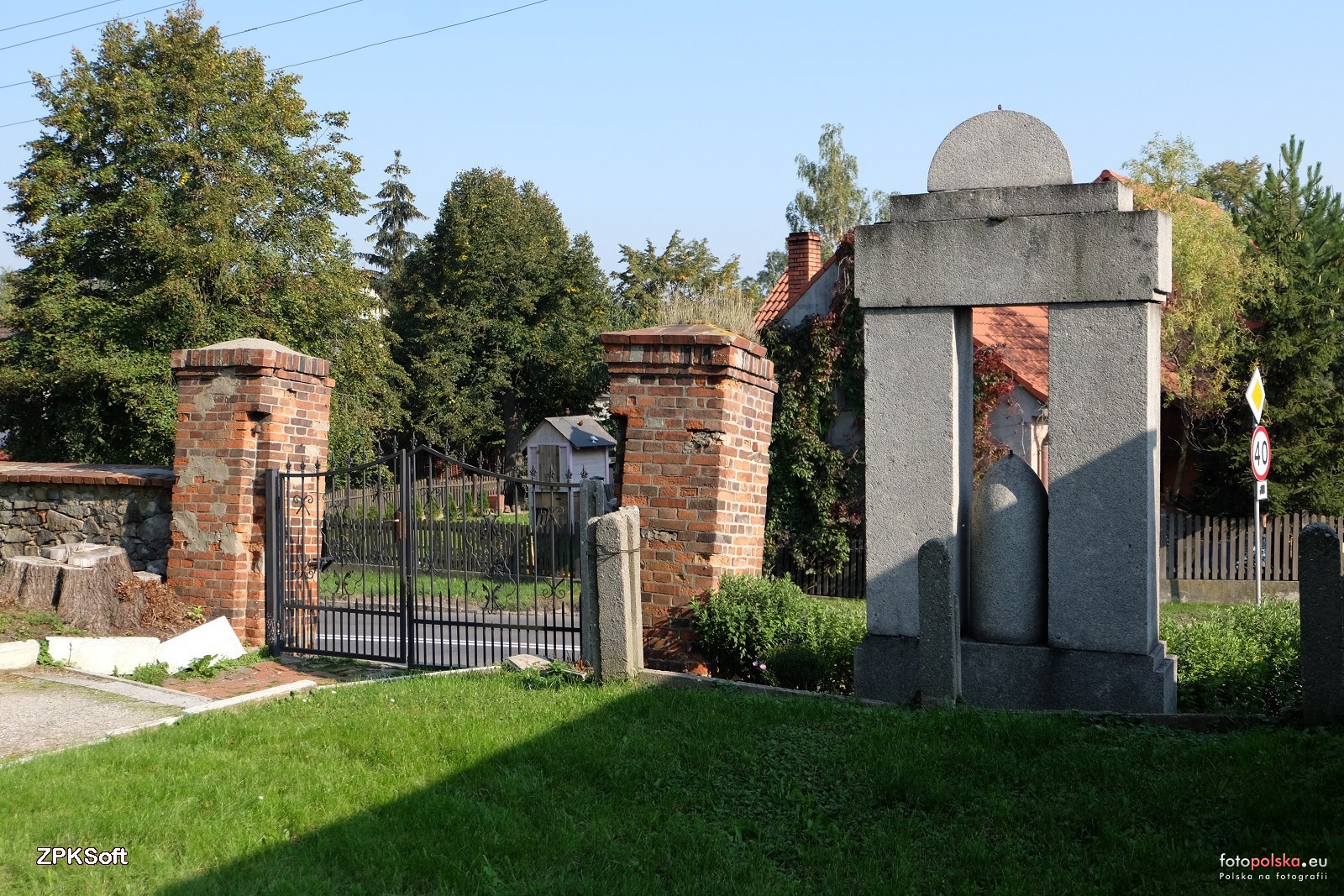 29 września 2017 , Wejście na teren kościoła św. Floriana. Po prawej tył pomnika poległych w I wojnie światowej. Stare lipy, które powodowały uszkodzenia muru zostały już wycięte.Skomentuj zdjęcie |