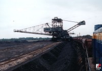 14 czerwca 2002 , Rozładunek pociągu z kamieniem pod zwałowarką na zwałowisku kamienia "Bór".Skomentuj zdjęcie |
