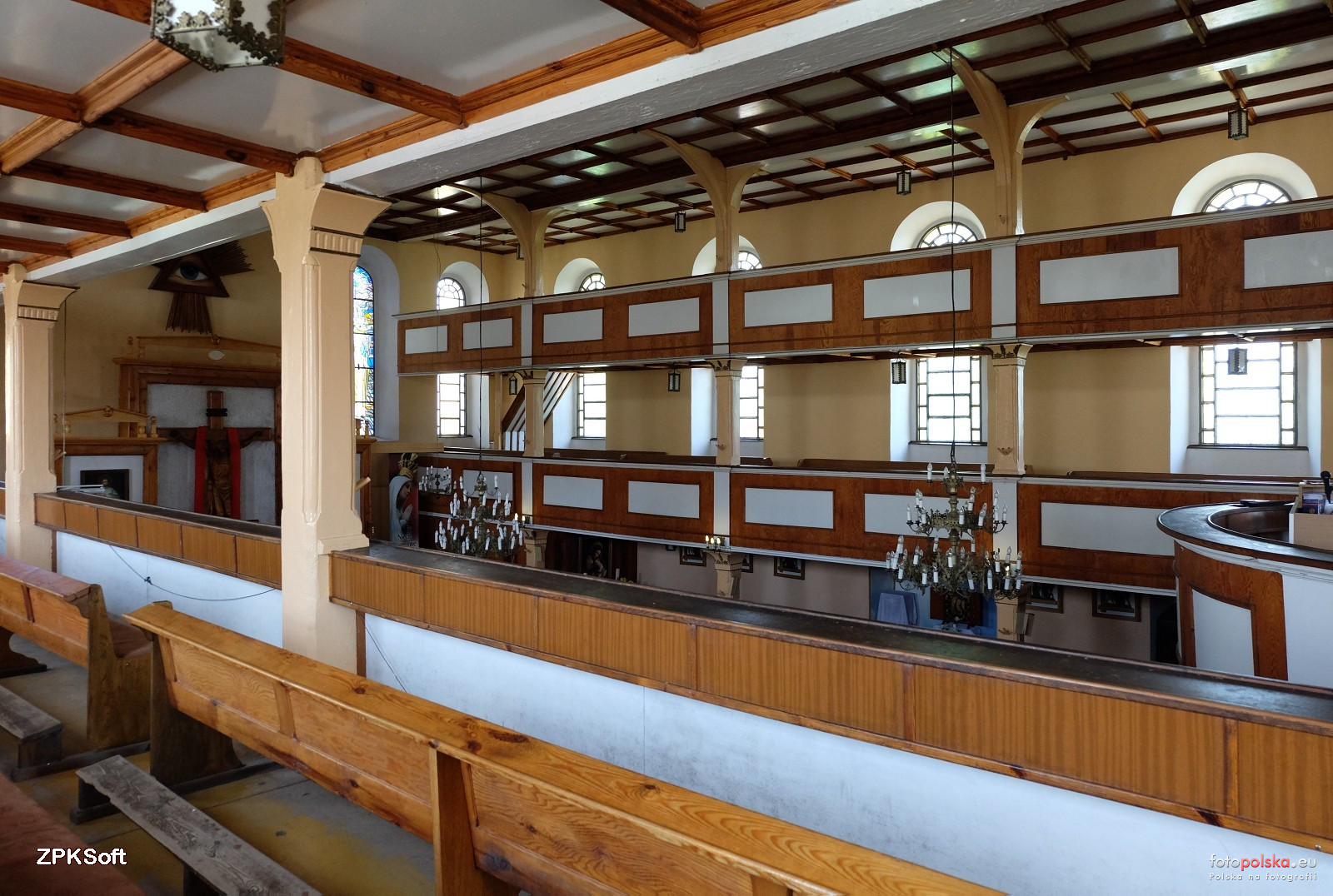 17 maja 2017 , Wnętrze kościoła Opatrzności Bożej. Kościół wzniesiono jako świątynię ewangelicką w latach 1784-1785. W 1888 r. dobudowano charakterystyczną wysoką wieżę. Po wojnie opuszczony, zamieniony na magazyn, po latach przejęty przez katolików. Z oryginalnego wyposażenia pozostały tylko empory.Skomentuj zdjęcie |