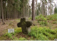 19 czerwca 2010 , Krzyż kamienny ("pokutny"?) stojący w "złotoryjskim lesie", z niezwykle ciekawym rytem: poziomicą (u góry) i kielnią (u dołu). To najprawdopodobniej atrybuty zawodu zamordowanego tu człowieka ew. narzędzia mordu popełnionego tu niegdyś przestępstwa.Skomentuj zdjęcie