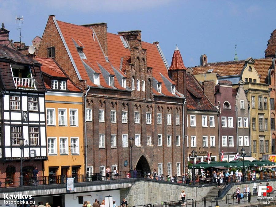 Brama Chlebnicka więcej zdjęć (52) Zbudowano: XV wiek Dawniej: Brodbänkentor Brama Chlebnicka w Gdańsku, jedna z bram wodnych, stojąca nad Motławą na Długim Pobrzeżu u wylotu ulicy Chlebnickiej na Głównym Mieście. W swojej obecnej gotyckiej formie pochodzi z XV wieku, przy czym jest ona najstarszą z trzech zachowanych późnogotyckich bram wodnych – wskazuje na to nie tylko jej forma architektoniczna, ale także umieszczony nad przejazdem od strony Motławy herb Gdańska – dwa srebrne krzyże na tarczy w polu czerwonym, jeszcze bez dodanej w 1457 r. korony. Z kolei od strony ul. Chlebnickiej nad przejazdem umieszczono znak, obecnie najczęściej interpretowany jako lilia – dawny herb książąt Pomorza Gdańskiego z dynastii Sobiesławiców. ul. Chlebnicka więcej zdjęć (603) Dawniej: Brotbänkergasse, Platea Pistorum Ulica Chlebnicka (dawniej: ulica Ław Chlebowych, niem. Brotbänkengasse) – jedna z ulic w Gdańsku na Głównym Mieście. Wymieniana już w 1337 (jako platea pistorum), 1382 platea panum. Nazwa pochodzi od znajdujących się tu ław (straganów), na których handlowano pieczywem. Ulica zaczyna się w okolicy Bazyliki Mariackiej (jako przedłużenie ulicy Piwnej) i dochodzi do Bramy Chlebnickiej. Znajduje się na niej kilka godnych uwagi kamienic, wśród których wyróżniają się nr 16 – Dom Angielski, renesansowy, z lat 1568-70; nr 14 – późnogotycki Dom Schlieffów z 1520, z kamienną dekoracją fasady (oba należą do kompleksu kamienic użytkowanych przez Dom Studencki Akademii Sztuk Pięknych w Gdańsku); nr 2 – renesansowa tzw. Szkoła Mariacka z 1581 (obecnie siedziba Gdańskiego Towarzystwa Przyjaciół Sztuki), nr 28 – wczesnobarokowy dom Holwela z 1652. |