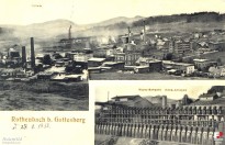 Lata 1903-1909 , Gorce/ Rothenbach -widok ogólny z terenem kopalni "Zorza wieczorna" na pierwszym planie, dalej widoczny "Hotel zum Klaraschacht" i szyb "Paulina". W miniaturze instalacje koksowni przy szybie "Klara" w latach 1903 -1909. Obieg kartki z roku 1913 , zdjęcia wykonane napewno przed 1909 rokiem.Skomentuj zdjęcie |