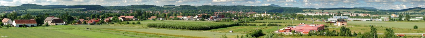 czerwiec 2010 , Panorama Świebodzic. Na pierwszym planie w lewej części kadru widoczne zabudowania dzielnicy Ciernie. Z charakterystycznych obiektów widać dawny Hugoschloß, komin Sileny, wieże trzech kościołów, Osiedle Piastowskie (po prawej), a na pierwszym planie hurtownię płytek ceramicznych i stację paliw (w "wiecznej" budowie). W oddali widoczny Chełmiec, a przed nim wieże Zamku Książ.Skomentuj zdjęcie
