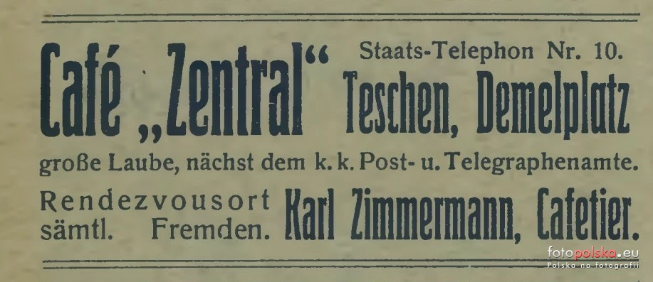 1909 , Reklama Cafe "Zentral". Źródło: Mitteilungen des Beskidenvereins, 1909, 1,3, 5-6Skomentuj zdjęcie |