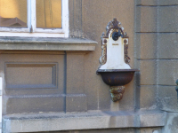 26 grudnia 2017 , Oryginalny, stary żeliwny zlew tuż przy wejściu do budynku. Na odlewie widoczne imię Hermann oraz początek nazwiska (Spangaro). Instalator Hermann Spangaro (instalacje wodne i gazowe) polecał swoją firmę w inseracie zamieszczonym w Księdze adresowej Cieszyna na rok 1900.Skomentuj zdjęcie