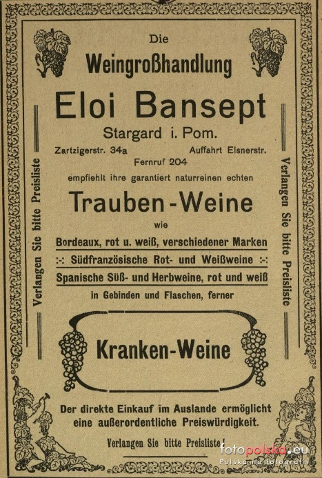 Lata 1920-1930 , O cennik prosimy pytać w hurtowni win Eloi Bansept. |
