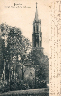 1913 , Kościół ewangelicki i fragment murów obronnych.Skomentuj zdjęcie |