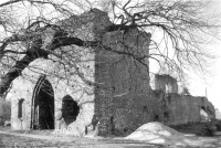 Lata 1985-1990 , Ruina gotyckiego kościoła, widoczna fasada zachodnia z wejściem (podstawa wieży). Skan z książki Wolfganga G. Deurera "Gdańsk i jego kościoły".Skomentuj zdjęcie |